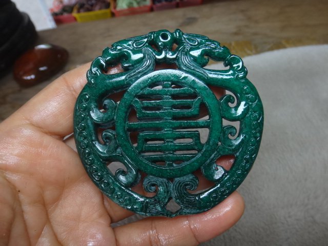 優寶購物《ubao.Tw》特貨品商城,黑貓宅配,取貨付款,《藍晶寶石玉石特賣》→〈雕刻項鍊系列〉→天然清透和闐青玉鏤雕〈雙龍*如意〉→Y1492-1 | Yahoo拍賣