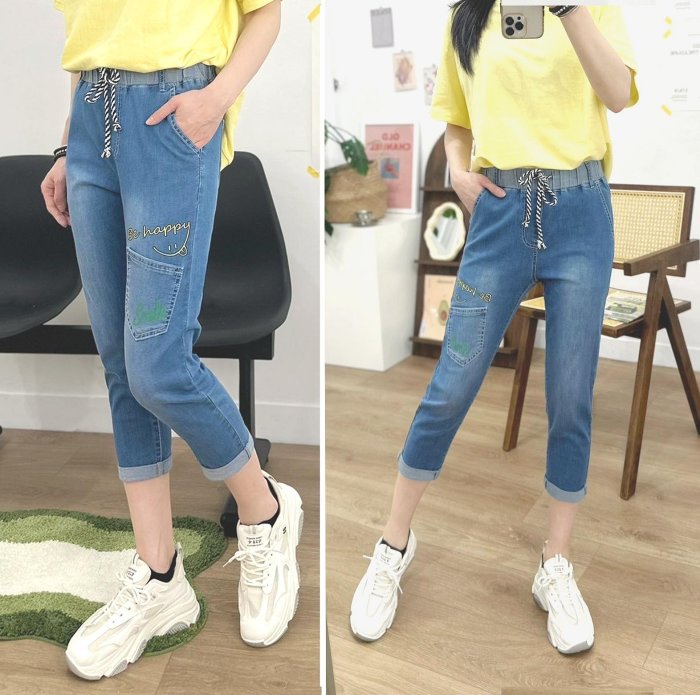 優寶購物《ubao.Tw》特貨品商城,黑貓宅配,取貨付款,現貨《2L~4L》中腰5575伸縮腰頭綁帶造型彈性七分褲牛仔褲反折褲/大尺碼牛仔褲【時尚Tina】鑽石比例 | Yahoo拍賣