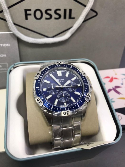 優寶購物《ubao.Tw》特貨品商城,黑貓宅配,取貨付款,現貨FOSSIL Garrett 藍色錶盤 銀色不鏽鋼錶帶 石英 三眼計時 男士手錶 FS5623 | Yahoo拍賣