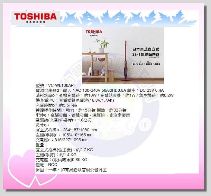 優寶購物《ubao.Tw》特貨品商城,黑貓宅配,取貨付款,易力購【 TOSHIBA 東芝原廠正品全新】小家電 手持式吸塵器 VC-WL100APT 全省運送 | Yahoo拍賣