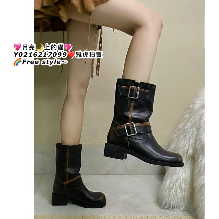 優寶購物《ubao.Tw》特貨品商城,黑貓宅配,取貨付款,❤月亮上的貓❤太好穿了~牛皮版⚡全新爆款や好品質韓國設計の輕鬆穿出潮範兒顯瘦顯腿長獨特復古擦色帥氣皮帶扣真皮機車靴!秋冬休閒百搭舒適大筒圍甜辣風騎士靴潮靴 | Yahoo拍賣