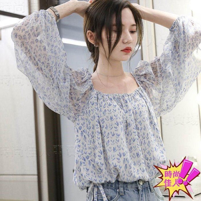 優寶購物《ubao.Tw》特貨品商城,黑貓宅配,取貨付款,時尚佳人=法式復古泡泡袖碎花雪紡上衣女春夏方領長袖收腰百搭防曬襯衫=上衣/針織衫/毛衣/雪紡/襯衫/蕾絲/棉麻衫/亞麻衫 | Yahoo拍賣
