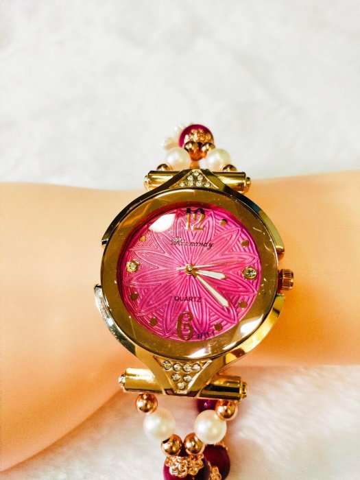 優寶購物《ubao.Tw》特貨品商城,黑貓宅配,取貨付款,超好看玫瑰紅虎眼手錶抽拉鏈-立體雕紋錶面鑲水晶鑽帶珍珠-實品比照片好看喔!增添貴人、桃花、財運! | Yahoo拍賣