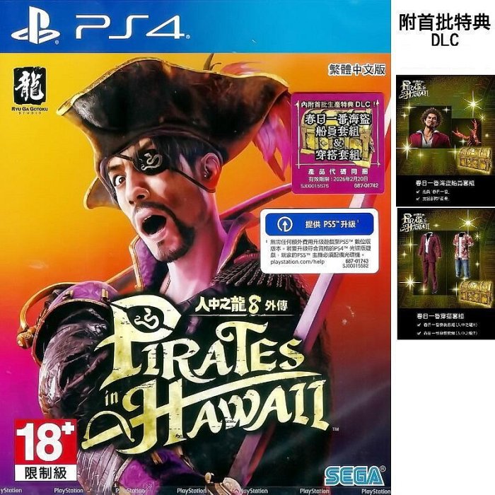 優寶購物《ubao.Tw》特貨品商城,黑貓宅配,取貨付款,【全新未拆】PS4 人中之龍8 外傳 夏威夷海盜 PIRATES IN HAWAII 中文版 內附特典 【台中恐龍電玩】 | Yahoo拍賣