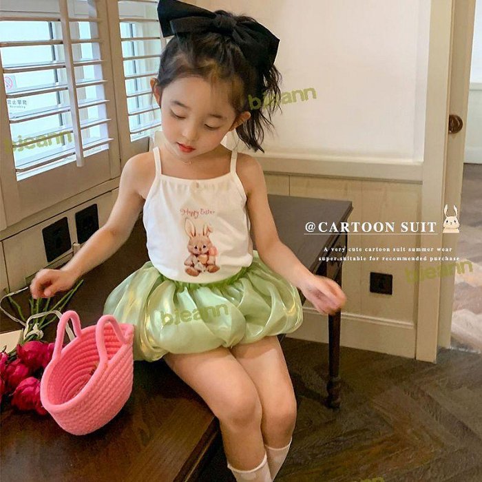 優寶購物《ubao.Tw》特貨品商城,黑貓宅配,取貨付款,HH韓版童裝女寶夏季新款套裝 女童可愛無袖套裝 吊帶上衣洋氣南瓜褲兩件套 外穿 女孩印花露背兩件式套裝 | Yahoo拍賣