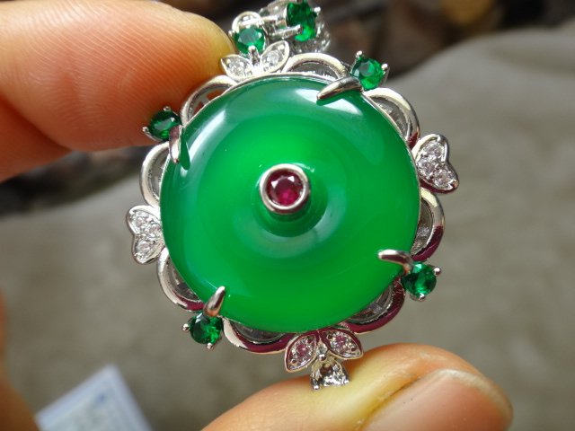 優寶購物《ubao.Tw》特貨品商城,黑貓宅配,取貨付款,《藍晶寶石→〈包臺項鍊系列〉→附證書 天然冰種清透綠玉髓 鑲鑽花邊厚平安扣包臺項鍊→X1996 | Yahoo拍賣