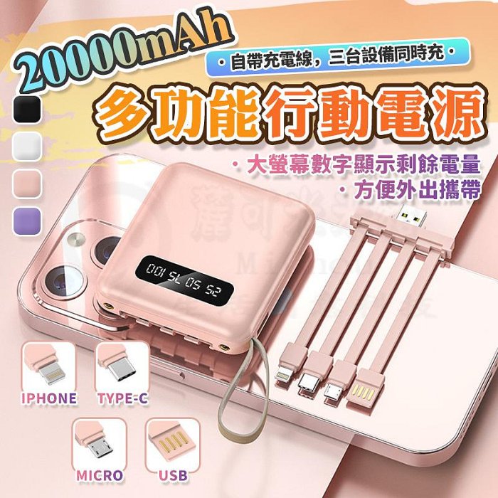 優寶購物《ubao.Tw》特貨品商城,黑貓宅配,取貨付款,🎉新北出貨🎉行動電源 迷你便攜 2.1a快充自帶四線 行充 便捷掛繩 可拆線 行動充 快充 20000mah | Yahoo拍賣