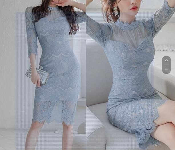 優寶購物《ubao.Tw》特貨品商城,黑貓宅配,取貨付款,§§§ aMOre §§§ 浪漫唯美灰藍全蕾絲 網紗透視拼接高腰窈窕連身洋裝~超值 追加 | Yahoo拍賣