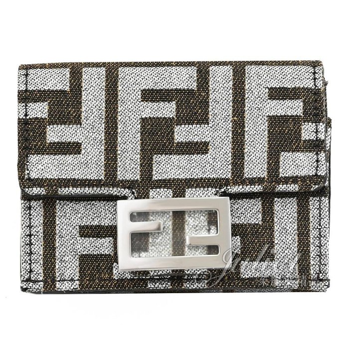 優寶購物《ubao.Tw》特貨品商城,黑貓宅配,取貨付款,【茱麗葉精品】全新商品 FENDI 專櫃商品 8M0395 金屬LOGO銀蔥緹花款三折小短夾.咖/銀 現貨 | Yahoo拍賣