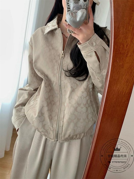 優寶購物《ubao.Tw》特貨品商城,黑貓宅配,取貨付款,空姐精品代購 COACH 秋冬熱賣新款 經典老花夾克 翻領防風外套 女生夾克 運動外套 輕便百搭 美拉德風 附購證 | Yahoo拍賣