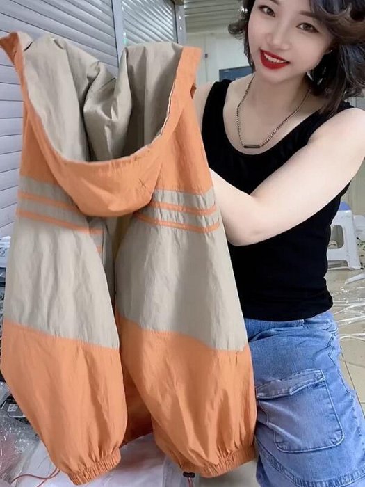 優寶購物《ubao.Tw》特貨品商城,黑貓宅配,取貨付款,(小丹)2023夏季新款寬鬆時尚防曬紫外線撞色拉鍊連帽防曬衣女外套 | Yahoo拍賣