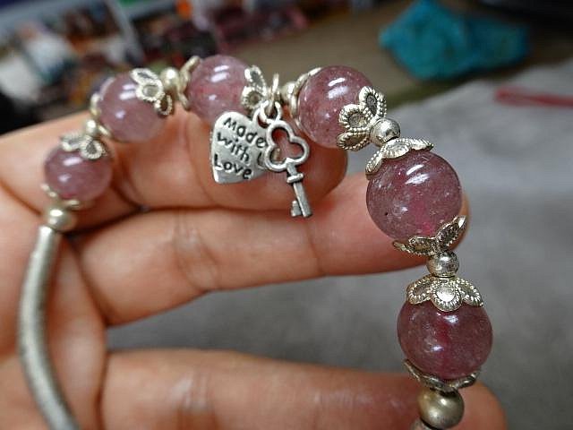 優寶購物《ubao.Tw》特貨品商城,黑貓宅配,取貨付款,《藍晶寶石玉石特賣區→〈精緻手鍊系列〉→天然通透草莓水晶10mm圓珠愛心鑰匙精緻手鍊→Z1824 | Yahoo拍賣