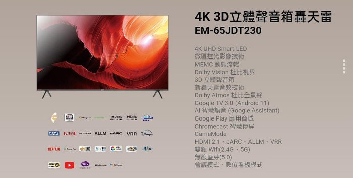 優寶購物《ubao.Tw》特貨品商城,黑貓宅配,取貨付款,高雄 聲寶4K EM-65JDT230 65吋液晶電視24200元 另售EM-75JD230 29600元 | Yahoo拍賣