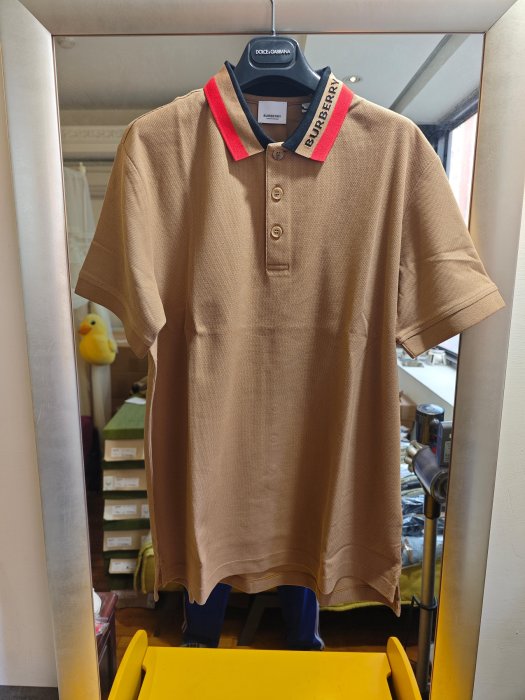 優寶購物《ubao.Tw》特貨品商城,黑貓宅配,取貨付款,BURBERRY全新真品越南製雙色領子LOGO字樣駝色POLO衫(M號/L號/XL號)--2.7折出清(不議價商品) | Yahoo拍賣