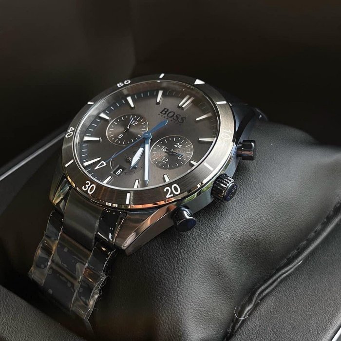 優寶購物《ubao.Tw》特貨品商城,黑貓宅配,取貨付款,HUGO BOSS Santiago 灰色錶盤 藍色不鏽鋼錶帶 石英 三眼計時 男士手錶 1513865 | Yahoo拍賣