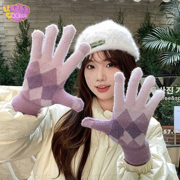 優寶購物《ubao.Tw》特貨品商城,黑貓宅配,取貨付款,韓國MM =女士秋冬季韓版加厚保暖防寒毛線學生寫字針織菱形格五指手套女=手套/觸控手套/皮手套/露指手套/臂套 | Yahoo拍賣