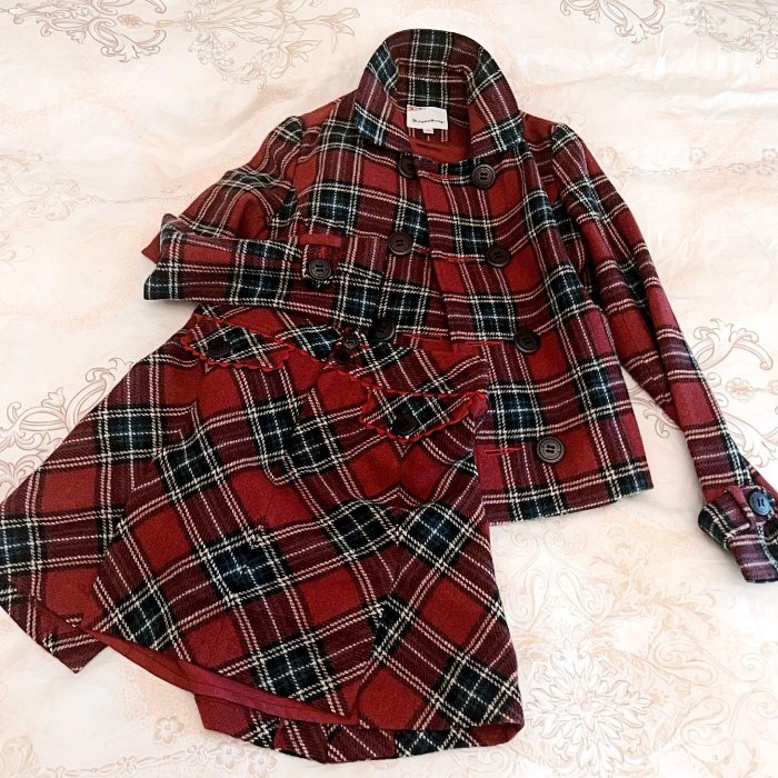 優寶購物《ubao.Tw》特貨品商城,黑貓宅配,取貨付款,百貨專櫃名牌精品 Knights Bridge KB棗紅色經典格紋學院款英格蘭套裝修身合身正毛呢針織羊毛英倫式雙排刺繡鈕扣 高級學院 外套+窄傘擺裙 成套 套裝 | Yahoo拍賣