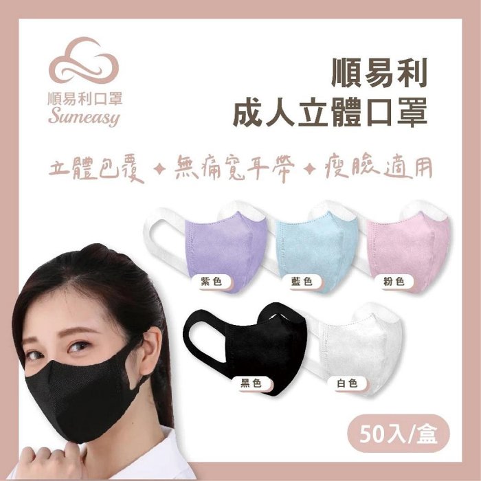 優寶購物《ubao.Tw》特貨品商城,黑貓宅配,取貨付款,現貨💥24小時出貨🚚【順易利】寬耳帶 成人3D立體口罩 (50入/盒) | Yahoo拍賣