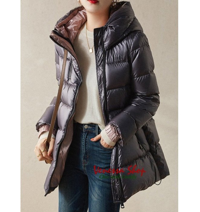 優寶購物《ubao.Tw》特貨品商城,黑貓宅配,取貨付款,小V私家~ 歐單 MO 新款 裡外雙面撞色 輕薄柔軟 女の微光澤質感中長版連帽羽絨外套 兩色 (W717) | Yahoo拍賣