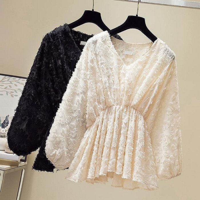 優寶購物《ubao.Tw》特貨品商城,黑貓宅配,取貨付款,90公斤可穿 大尺碼 長袖襯衫女 春秋季新款雪紡衫女V領胖mm寬鬆遮肚子顯瘦洋氣上衣蕾絲打底衫T恤 潮 | Yahoo拍賣