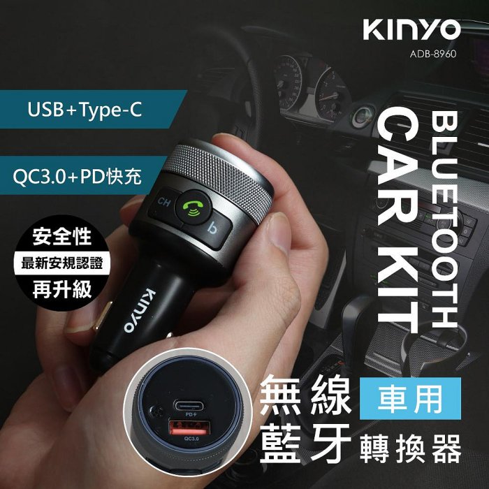 優寶購物《ubao.Tw》特貨品商城,黑貓宅配,取貨付款,含稅全新原廠保固一年KINYO鋁合金QC加PD快充藍牙5.1免提液晶顯示車用音響轉換器播放器(ADB-8960) | Yahoo拍賣