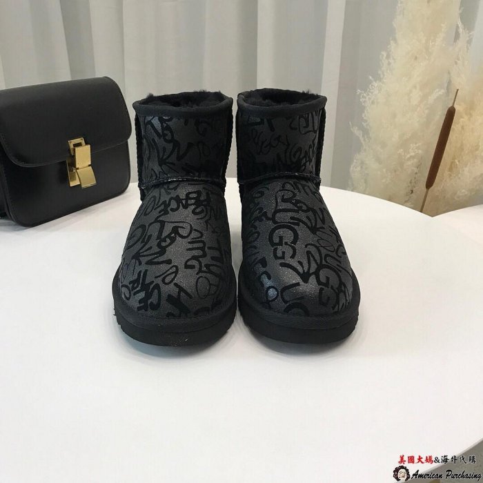 優寶購物《ubao.Tw》特貨品商城,黑貓宅配,取貨付款,100%原廠澳洲 UGG 7034 情侶款塗鴉印花 簡約造型風 黑色女款雪地靴 OUTLET | Yahoo拍賣