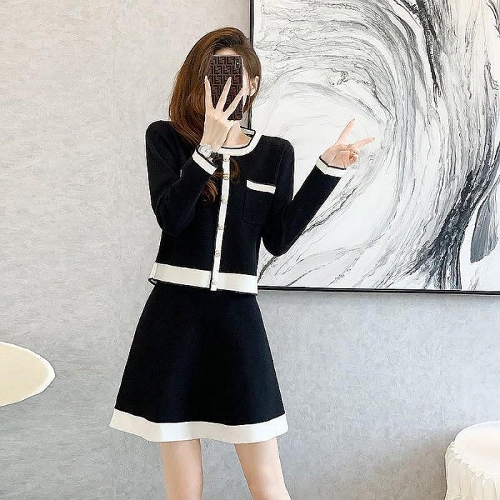 優寶購物《ubao.Tw》特貨品商城,黑貓宅配,取貨付款,【潮派衣櫥】【小香風套裝】法式針織小香風女 長袖小香風外套針織短裙兩件套女 2024A字時休閒毛衣套裝裙 黑色針織小香風套裝 | Yahoo拍賣