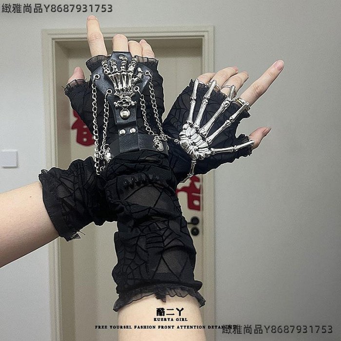 優寶購物《ubao.Tw》特貨品商城,黑貓宅配,取貨付款,酷二丫萬圣節原宿暗黑朋克哥特蛛網袖套骷髏手鏈套裝蕾絲手套配飾【緻雅尚品】 | Yahoo拍賣