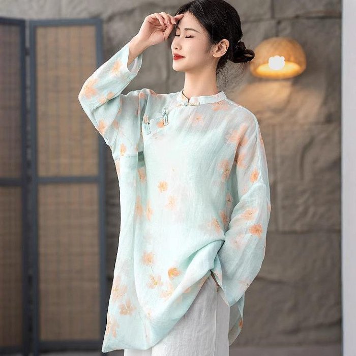 優寶購物《ubao.Tw》特貨品商城,黑貓宅配,取貨付款,長版棉麻上衣 苧麻上衣 2025春夏季新款新中式斜襟苧麻襯衫女文藝復古立領禪意寬松襯衣35 ZM020 | Yahoo拍賣