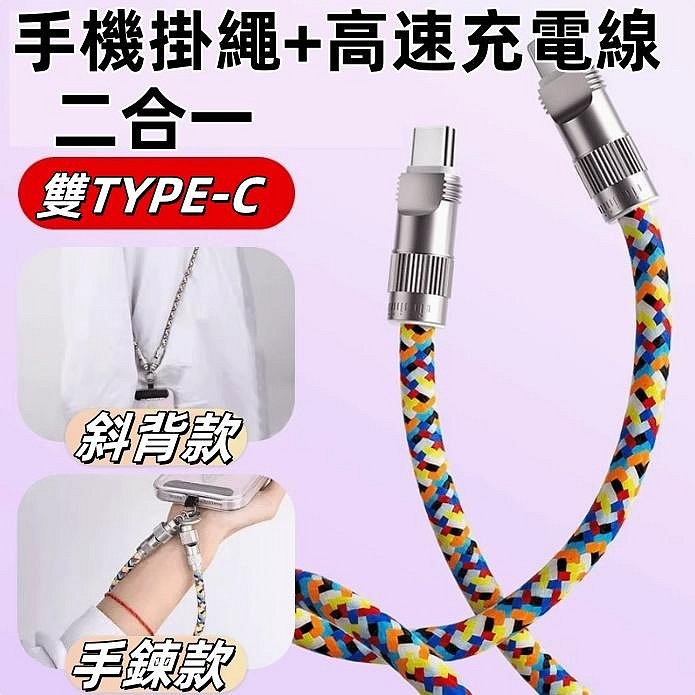 優寶購物《ubao.Tw》特貨品商城,黑貓宅配,取貨付款,可斜背掛繩充電線 手機掛繩 手環短線充電線 60W快充線IPHONE16 三星 OPPO 雙TYPE-C 充電線 掛繩 | Yahoo拍賣