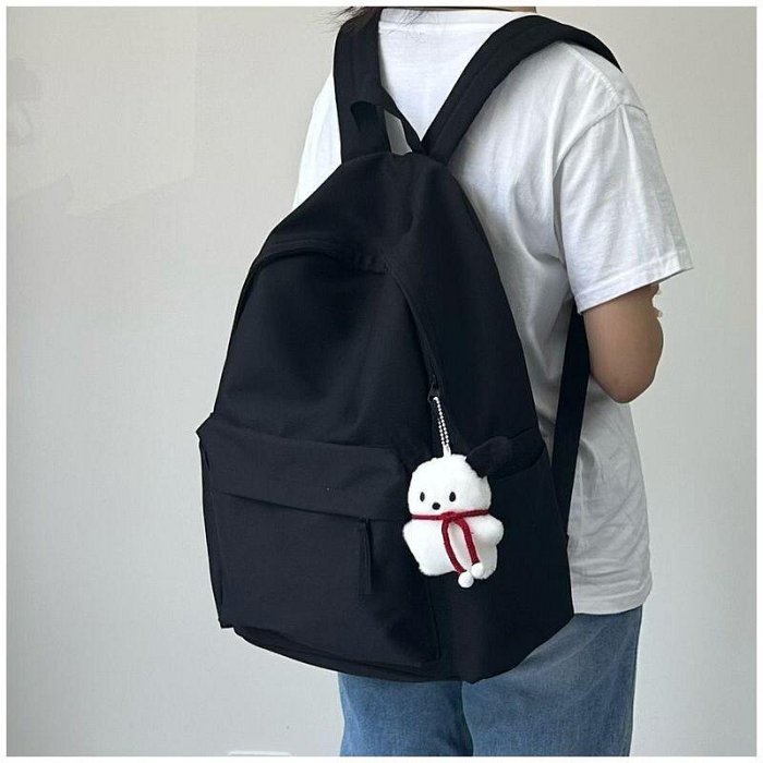 優寶購物《ubao.Tw》特貨品商城,黑貓宅配,取貨付款,【新品】日系書包少女古著感素色百搭後背包初中高中大學生大容量背包男生可配小飾品 | Yahoo拍賣