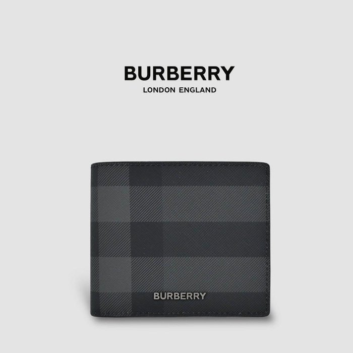 優寶購物《ubao.Tw》特貨品商城,黑貓宅配,取貨付款,👜Burberry 品牌字母徽標 經典格紋雙摺皮夾|炭灰色|對折|黑色衍縫縫線|6卡|短夾|錢夾|錢包|環保皮革|男女通用款錢包|官網同步在售款 | Yahoo拍賣