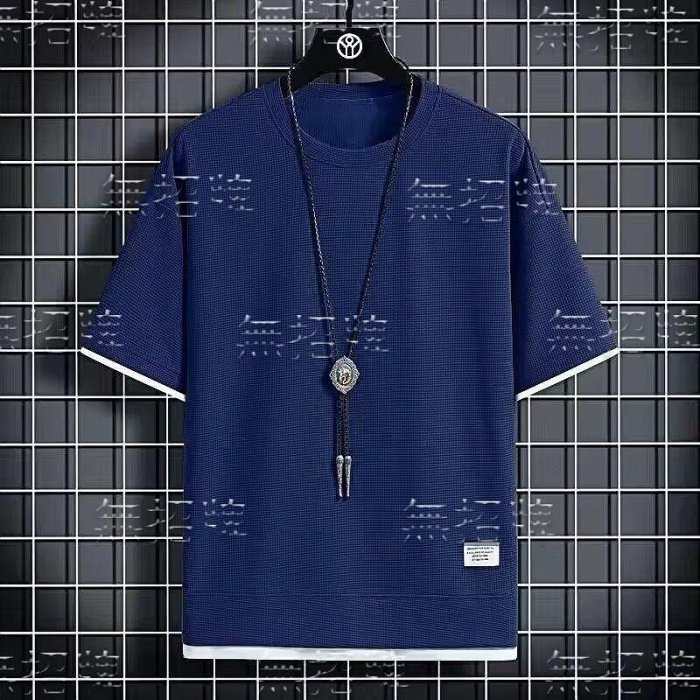 優寶購物《ubao.Tw》特貨品商城,黑貓宅配,取貨付款,無招牌廠家直銷店=華夫格短袖t恤夏季男士假兩件寬松半袖體恤運動薄款圓領潮牌衣服 | Yahoo拍賣