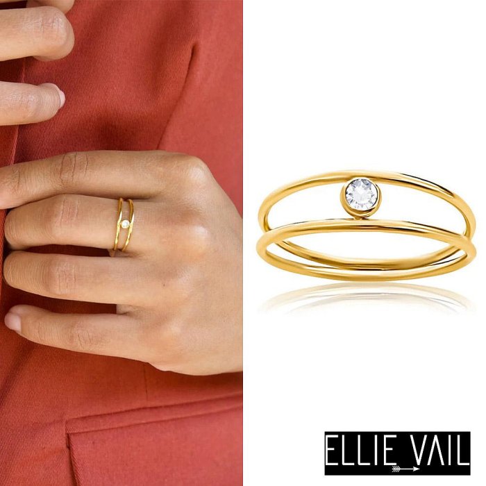 優寶購物《ubao.Tw》特貨品商城,黑貓宅配,取貨付款,ELLIE VAIL 邁阿密防水珠寶 金色圓形單鑽戒指 簡約雙層 Hollis Double | Yahoo拍賣