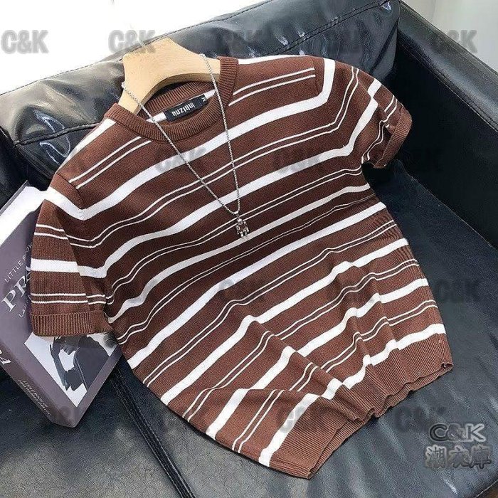 優寶購物《ubao.Tw》特貨品商城,黑貓宅配,取貨付款,潮衣庫『夏季新款短袖t恤男士冰絲針織衫個性條紋ins撞色青年大碼圓領體恤』男上衣襯衫針織衫T恤POLO衫 | Yahoo拍賣