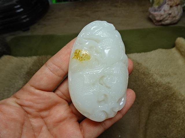 優寶購物《ubao.Tw》特貨品商城,黑貓宅配,取貨付款,《藍晶寶石玉石特賣區→〈雕刻系列〉→天然清透帶皮和闐白玉精雕(魚如意〉→X1507 | Yahoo拍賣