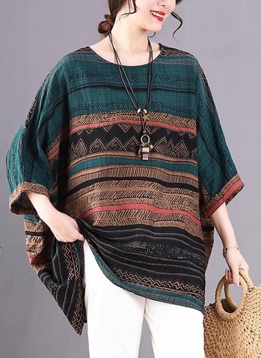 優寶購物《ubao.Tw》特貨品商城,黑貓宅配,取貨付款,女人衣櫥㊕春夏裝復古棉麻風文藝氣質 灰色/綠色圓領層次圖騰印花 肩連七分袖中長蝙蝠衫上衣 胖MM大尺碼超大胸178.C403♥ | Yahoo拍賣