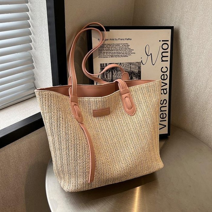 優寶購物《ubao.Tw》特貨品商城,黑貓宅配,取貨付款,學生上課手提大容量包包女簡約休閑通勤托特包2025夏季編織單肩包 側背包/手提袋/托特包/單肩包/沙灘包/草編包 | Yahoo拍賣
