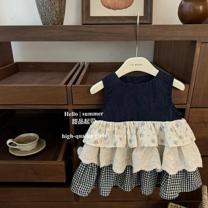 優寶購物《ubao.Tw》特貨品商城,黑貓宅配,取貨付款,〖Barbaro〗女童連身裙 森系女童無袖背心裙碎花格子拼接牛仔裙 疊穿蛋糕裙 女童洋裝 女童童裝 童裝 女童 | Yahoo拍賣