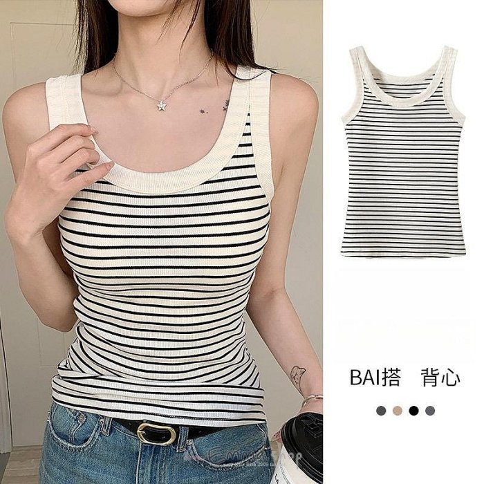 優寶購物《ubao.Tw》特貨品商城,黑貓宅配,取貨付款,EmmaShop艾購物-韓國同步上新-日韓妞必備單品-就是愛條紋系列-百搭寬肩修身條紋背心 | Yahoo拍賣
