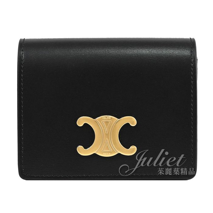 優寶購物《ubao.Tw》特貨品商城,黑貓宅配,取貨付款,【茱麗葉精品】全新商品 CELINE 專櫃商品 TRIOMPHE 金屬LOGO小牛皮釦式卡片零錢包.黑 現貨 | Yahoo拍賣