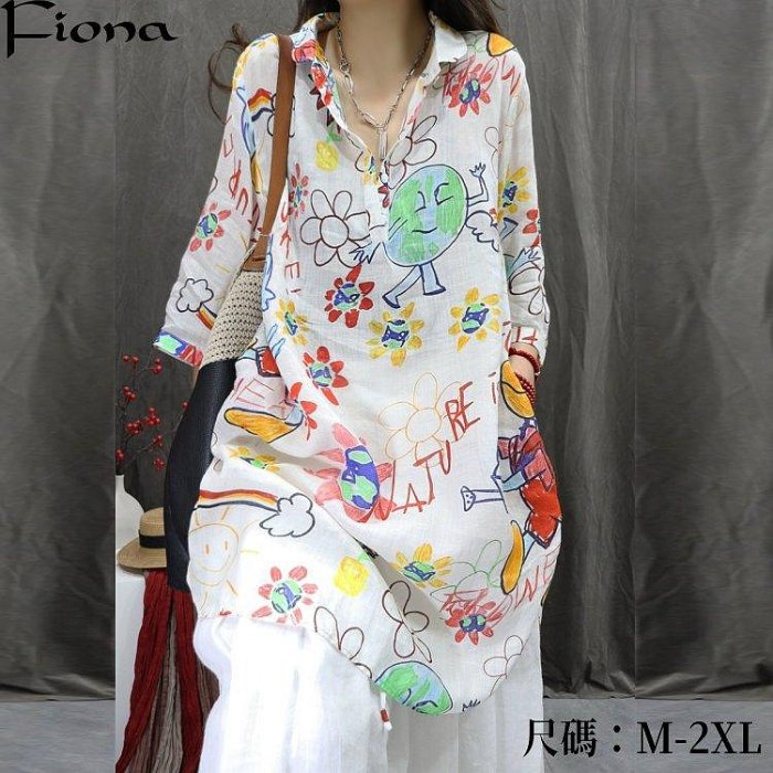 優寶購物《ubao.Tw》特貨品商城,黑貓宅配,取貨付款,✨免運✨平價衣 棉麻 童趣塗鴉 七分袖 棉麻衫 寬鬆長版上衣【費歐娜 】M250424 | Yahoo拍賣