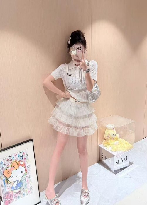優寶購物《ubao.Tw》特貨品商城,黑貓宅配,取貨付款,Miumiu 短袖 短裙 套裝polo衫➕蛋糕裙 格蕾公主套裝 針織polo衫 多層網紗蛋糕短裙 甜美 SML | Yahoo拍賣