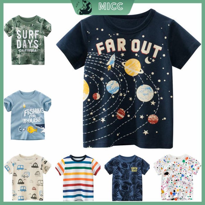 優寶購物《ubao.Tw》特貨品商城,黑貓宅配,取貨付款,1-9歲 男童短袖T恤 純棉吸汗 2025夏季男童圓領短袖 條紋椰子樹星球圖案-尤米 滿599元或4件免運 | Yahoo拍賣