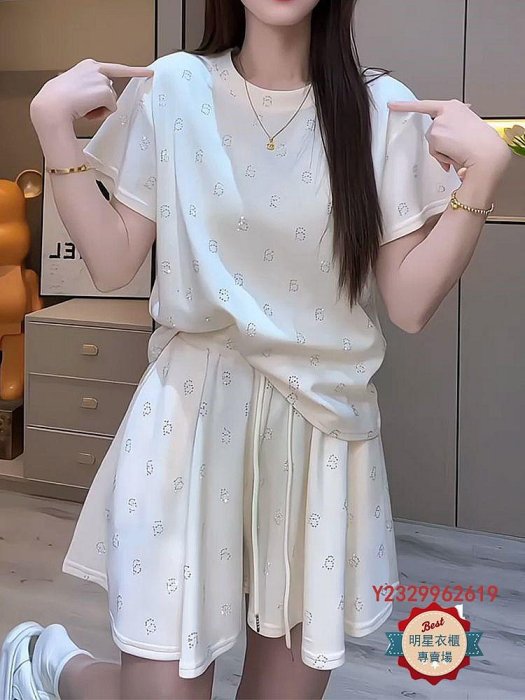 優寶購物《ubao.Tw》特貨品商城,黑貓宅配,取貨付款,明星衣櫃=休閑減齡套裝女春夏季燙鉆短袖t恤松緊 | Yahoo拍賣