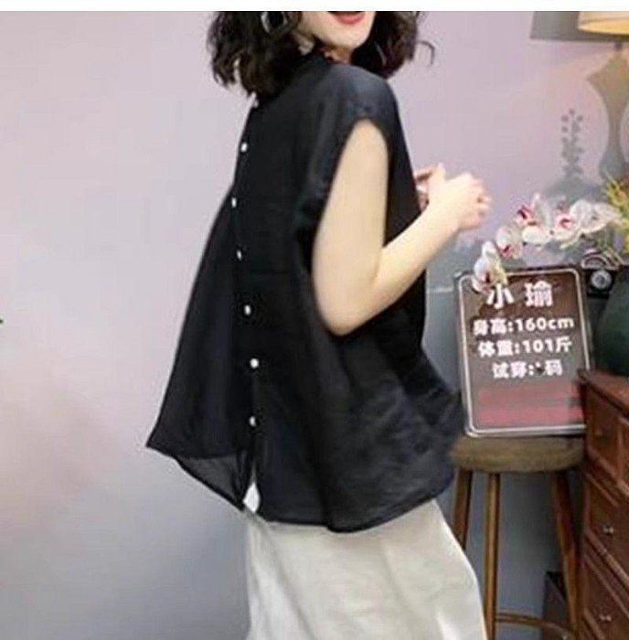 優寶購物《ubao.Tw》特貨品商城,黑貓宅配,取貨付款,L~5XL 多巴胺無袖棉麻衫女 寬鬆顯瘦氣質減齡木耳邊上衣背心【TV29459】台北薇安夏日T | Yahoo拍賣