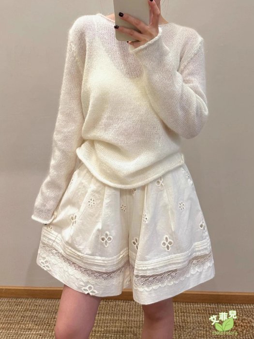 優寶購物《ubao.Tw》特貨品商城,黑貓宅配,取貨付款,艾菲兒=2025新款高腰全棉蕾絲拼接鏤空休閑短褲女夏季闊腿褲子五分褲 | Yahoo拍賣