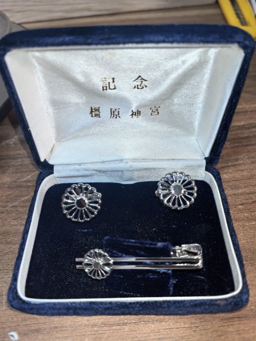 優寶購物《ubao.Tw》特貨品商城,黑貓宅配,取貨付款,日本檀原神宮領夾袖口一套,材質未知,十八瓣皇室菊標,直徑1.7厘米,總重12.2克,有原裝盒子,看好拍不講價不退換。 | Yahoo拍賣