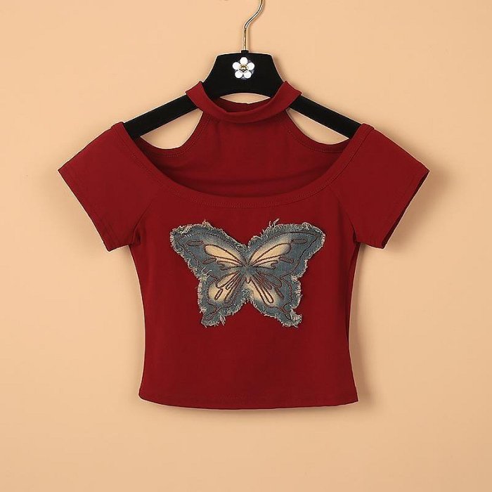 優寶購物《ubao.Tw》特貨品商城,黑貓宅配,取貨付款,夏女裝 辣妹風短版掛脖一字領露肩蝴蝶緊身顯瘦小個子露肚短袖T恤 | Yahoo拍賣