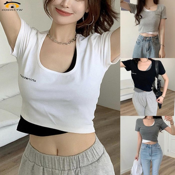 優寶購物《ubao.Tw》特貨品商城,黑貓宅配,取貨付款,夏季假期時尚女式假兩件式短袖 T 恤 | Yahoo拍賣